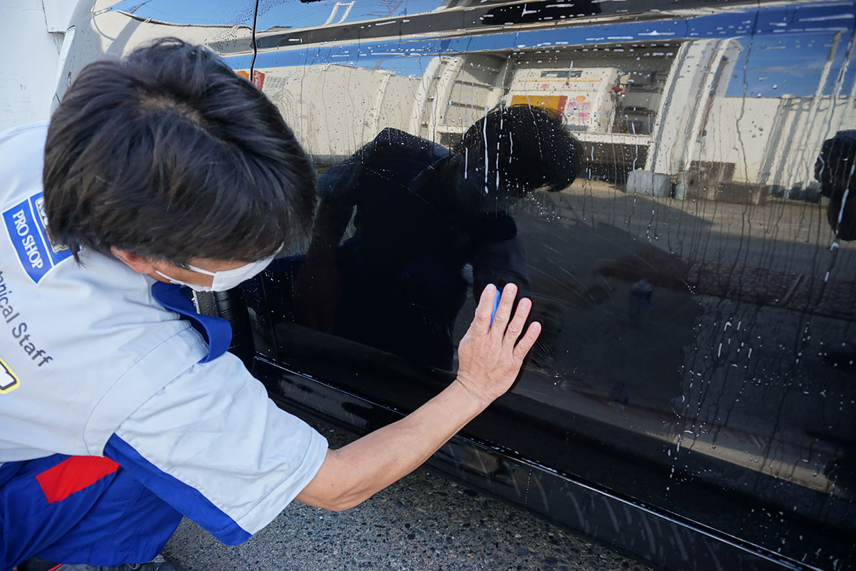 いくら洗車しても、ボディーがザラザラしたり輝きが出ないのは、冬季期間に付着する鉄粉が原因です。一つ残らず除去していきます。
